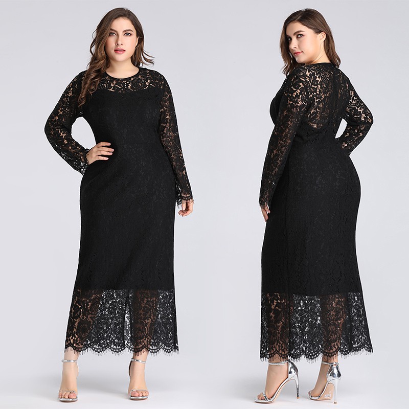 Plus Size Lace Long Sleeve Evening Formal Gown Dinner Party Maxi Dress 3077 Shopee Malaysia